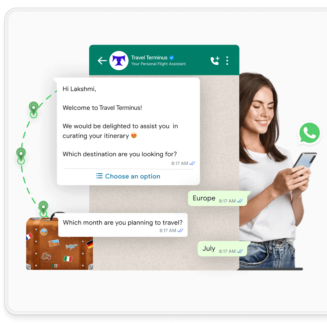 Message us on WhatsApp with your departure city, destination, travel dates, trip type and number of passengers. No long forms, just simple details.